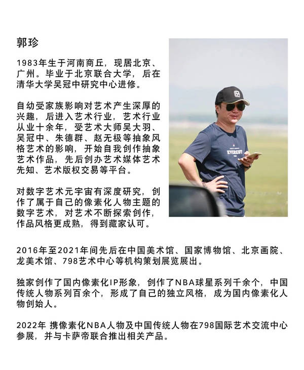 谈及未来,郭珍满怀激情地透露NBA球星系列仅是他艺术探索的起点,中国传统人物关羽、赵云也被他用像素表现出来,这次展览更是素有武财神关羽雕塑作品首次亮相同时将推出限量版关羽雕塑,这不仅仅是对个人创作边界的拓宽更是对数字艺术无限可能的探索与追求。郭珍相信无论时代如何变迁人们对于美好事物的追求与向往永远不会改变,而他正用自己的方式记录着这个时代也引领着下一个潮流。
